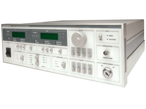 – Hosts 32 W (8 V, 4 A) TEC Modules – Hosts 4 Channels for Interchangeable Current Source, TEC or Combination Modules – Hosts Controller Modules up to 2 A LD Current with TE Control GPIB Interface – Hosts LD current Modules up to 8 A